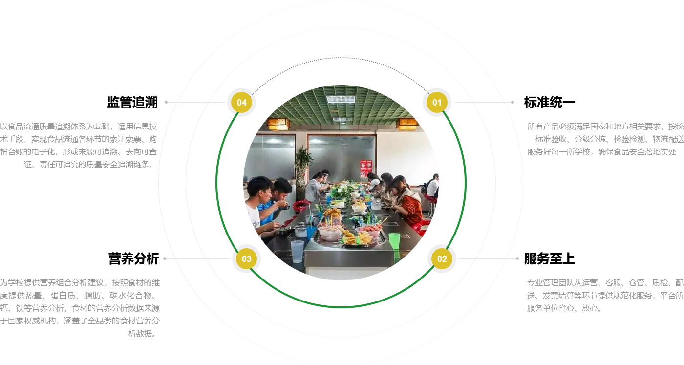 爱游戏官方网站入口校园营养餐聚焦中小学,着眼公共食堂食品安全,依托标准的运营与严格的管理,以数字化食安监管平台为核心,确保食材供应实现全溯源、全检测, 保障食品安全,用心关爱学生每一餐。