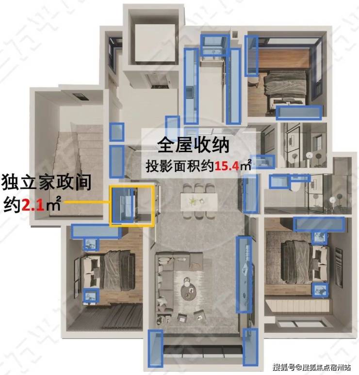 本户型全屋收纳空间顶面投影面积达到了约15.4㎡,覆盖玄关柜爱游戏(ayx)✿★★★★、客厅储物柜✿★★★★、卧室衣柜等多元场景.